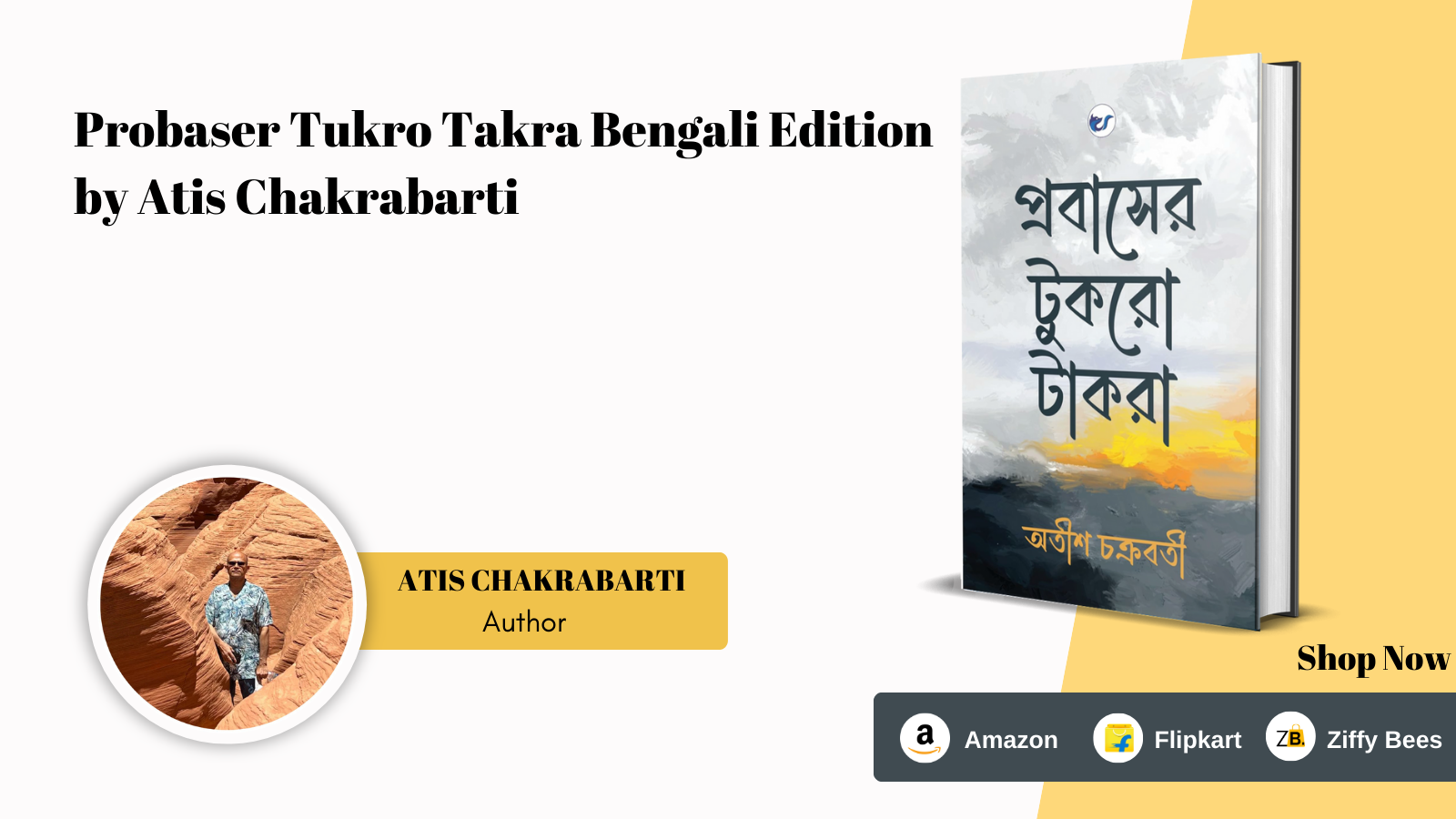 Born in India and now settled in Pennsylvania, USA, Atis Chakrabarti’s “Probaser Tukro Takra” offers readers a slice of life from an immigrant’s perspective, covering topics as diverse as literature, science, politics, religion, travel, and even cooking. It is more than just a memoir – it is a reflective piece of literature that speaks to the complexities of identity, cultural adaptation, and the evolving perceptions of life away from one’s homeland.