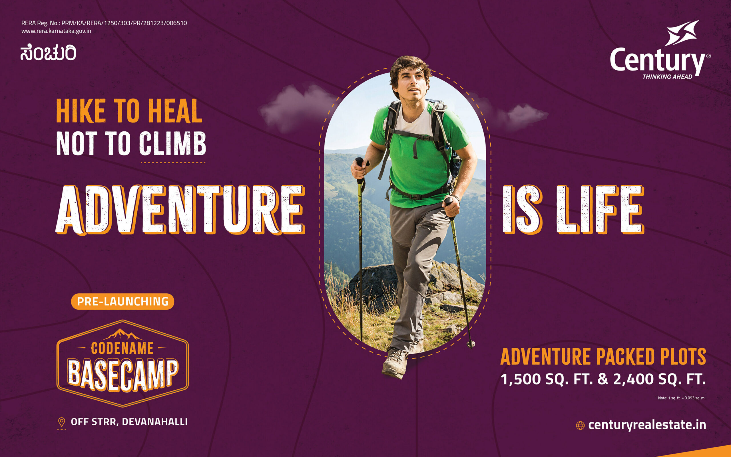 12th February 2024, Bengaluru: Century Real Estate, one of Bengaluru’s leading developers, has announced the resounding success of Codename Basecamp with Phase 1 of the development sold out within 24 hours. This one-of-a-kind adventure-themed plotted development, strategically located off STRR in North Bengaluru brought in INR 150 crores of sales to the company on its first day of pre-launch, contributing further to the company’s best-ever year for sales.