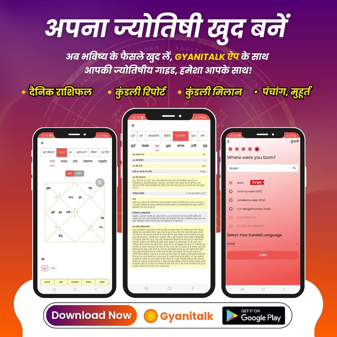 GyaniTalk offers a precise Panchang for the day, along with the details of the good and bad times, the location of the planets, and other important factors related to the Hindu calendar. This functionality allows people to engage in activities according to the favorable times of the day, making sure that every single day leads to positive energy and spirituality.
