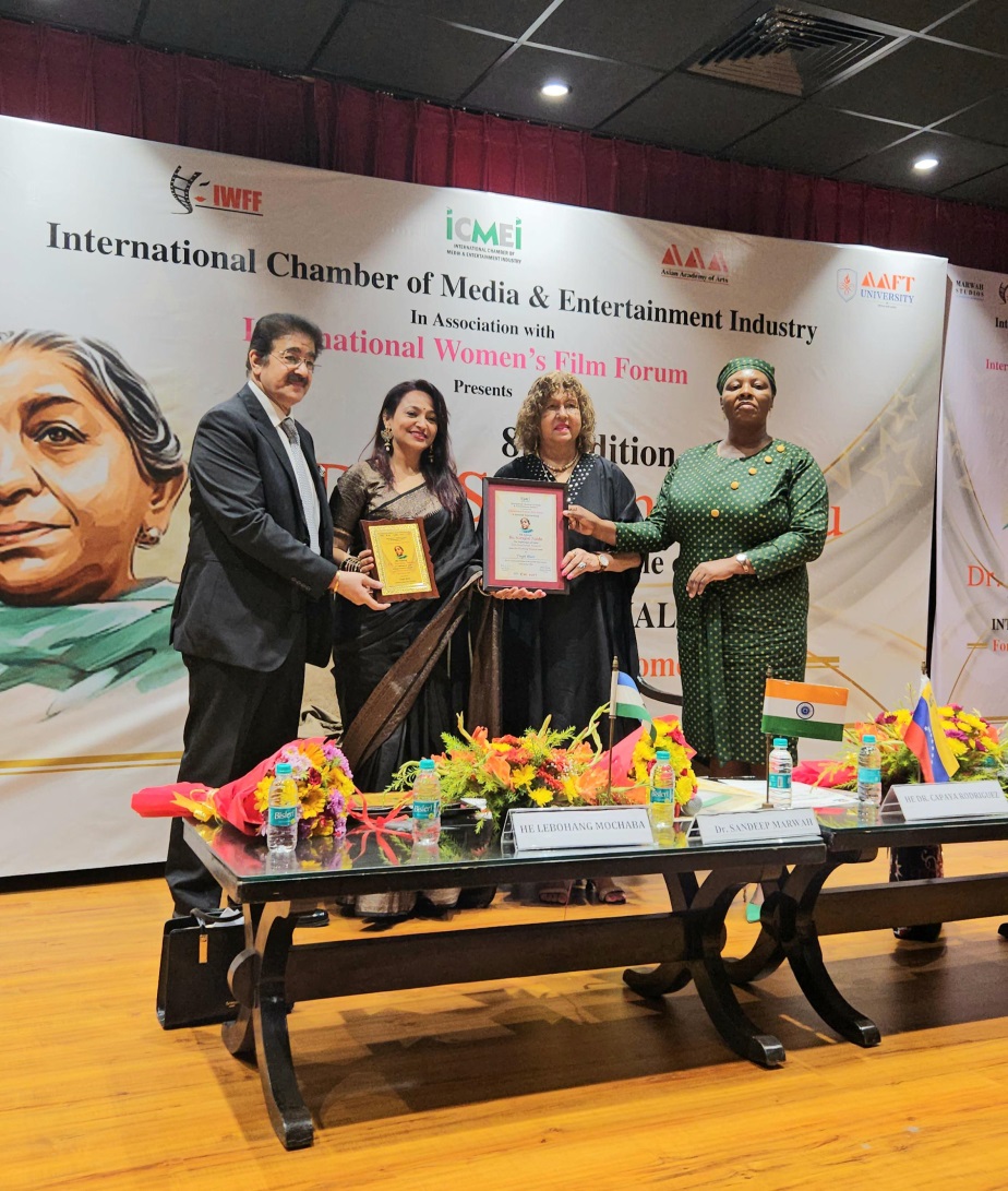 Acknowledging the notable work by Trupti in Marathi films like Agadbam and Touring talkies, alongwith the international recognition at the Cannes Film Festival, Sarojini Naidu International Awards for working women honoured the actor and producer in Noida on Wednesday, 23rd October 2024.