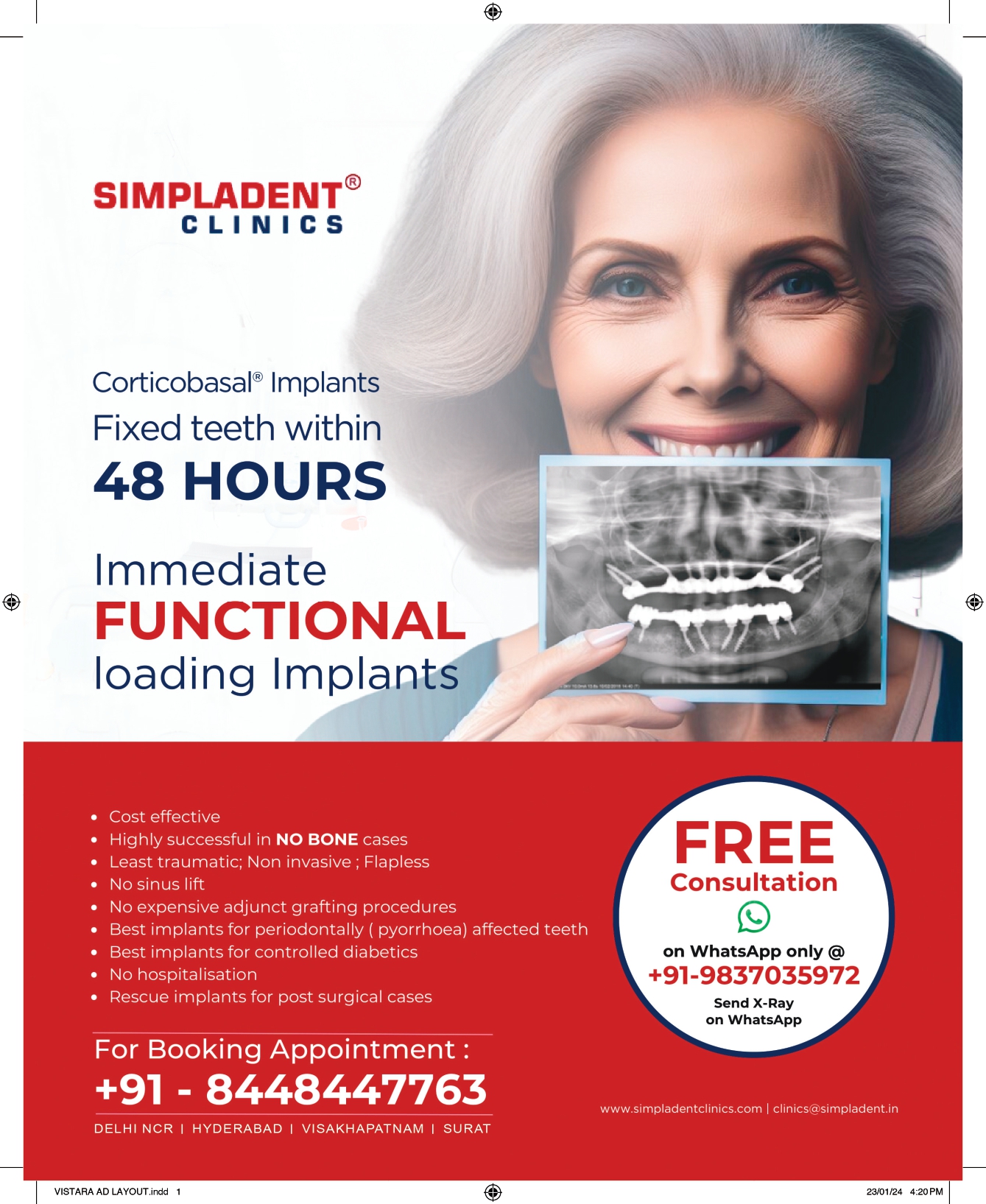 If you or a loved one have been living with the burden of missing teeth or uncomfortable dentures, it’s time to take action. Contact Simpladent today www.simpladentclinics.com +91-8448447763 and embark on a journey towards a brighter, more confident tomorrow. Don’t let age or bone loss hold you back from experiencing the joy of a complete smile.